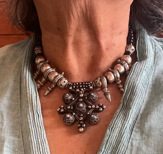 Algerian Silver Pendant with Silver Bicone Beads