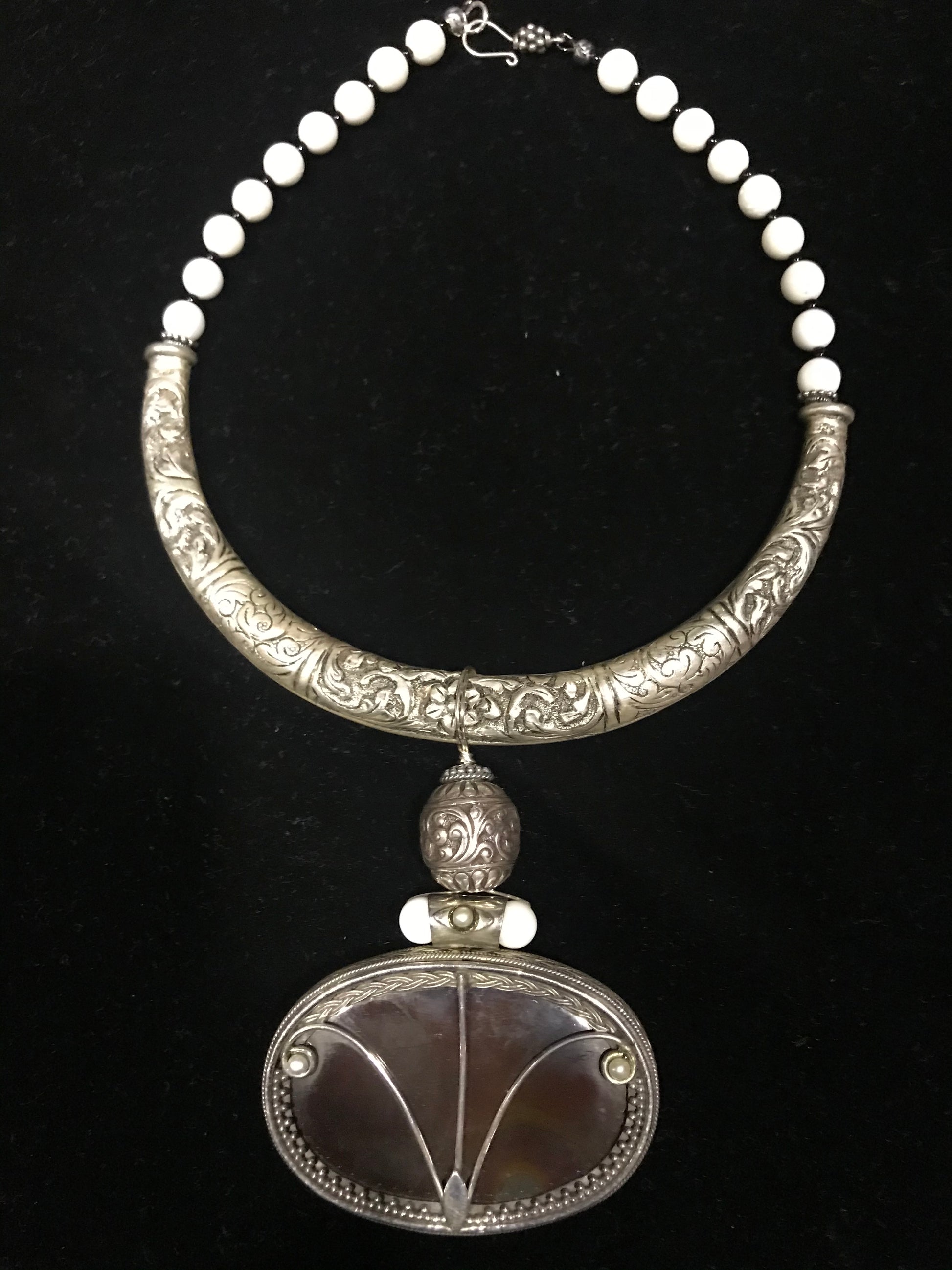 Agate and silver pendant on Silver “Hasli” with white coral and silver beads