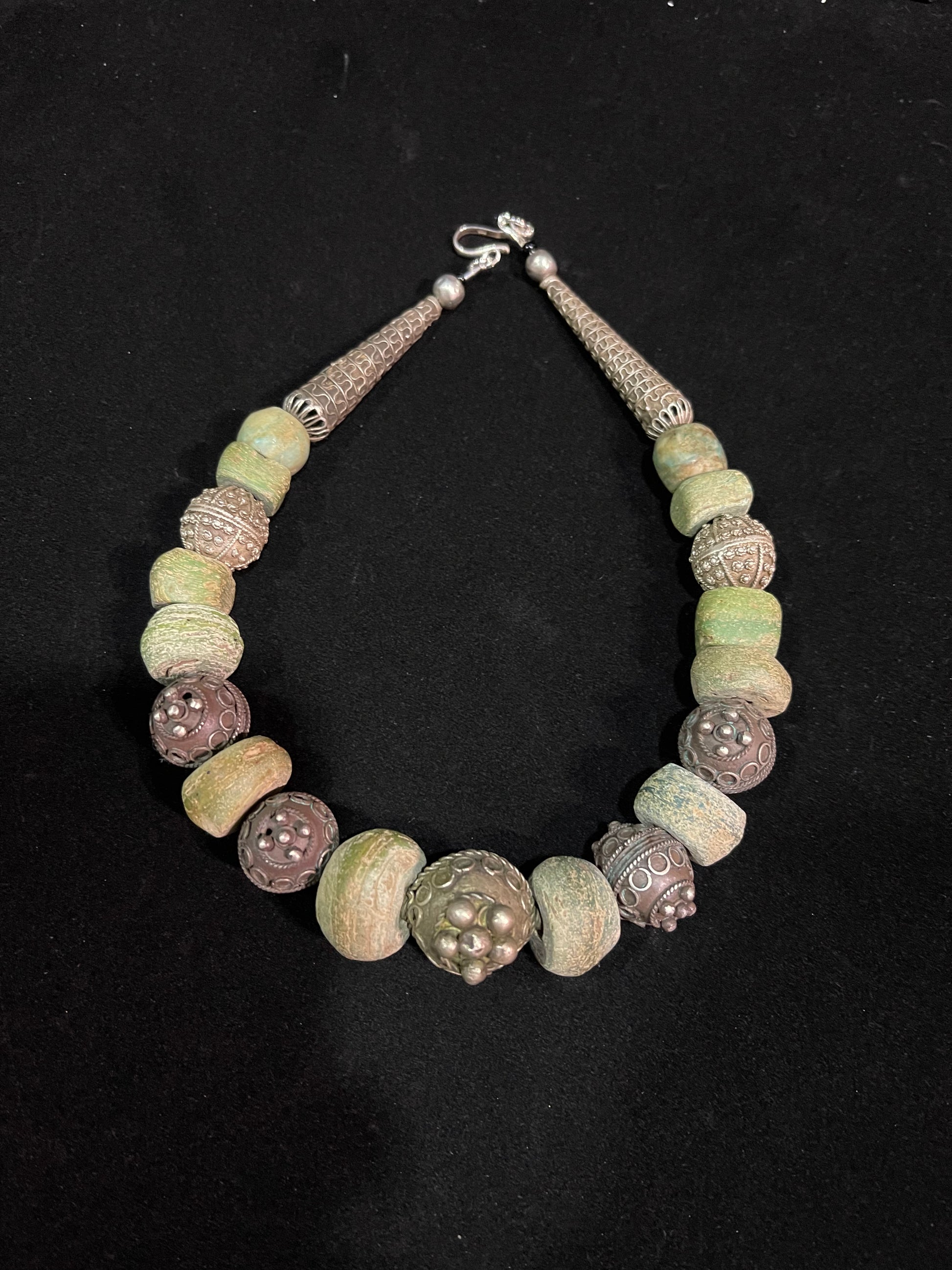 Antique Hebron beads strung with antique silver Moroccan beads and Yemeni silver tubes