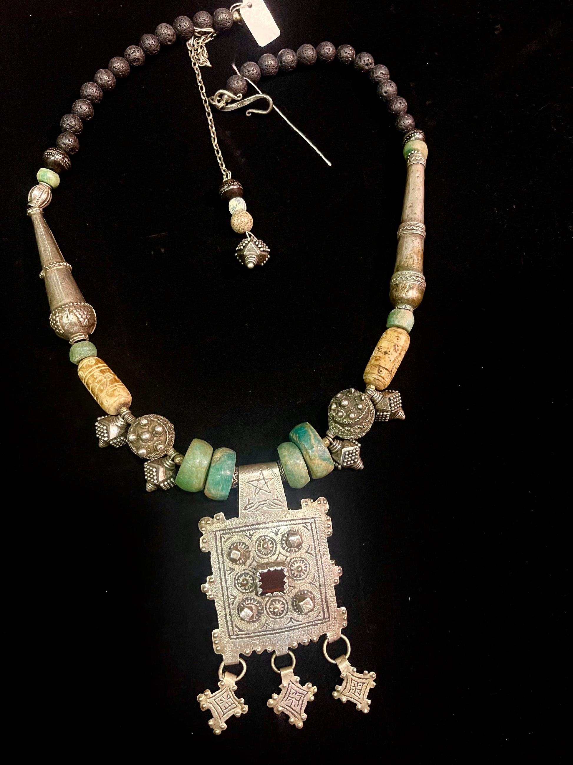 Antique Moroccan Silver pendant with Neilo and Old red grass