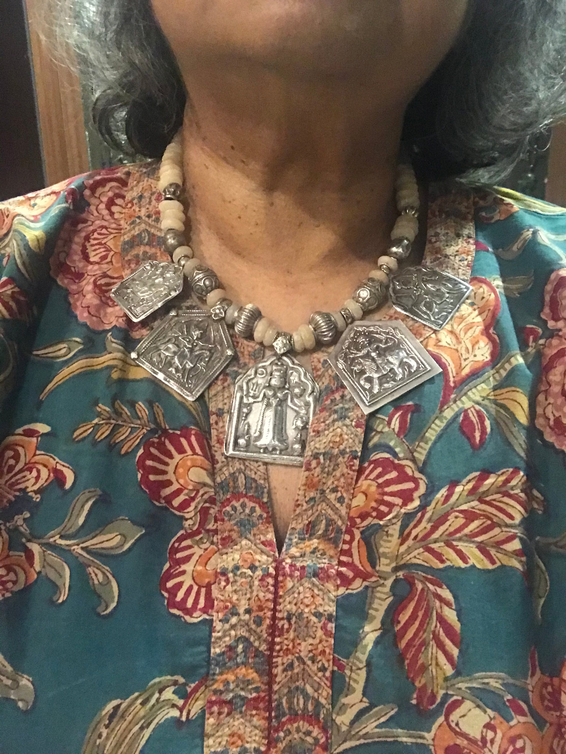 Five Antique Silver Amulets from Rajasthan, India. Strung with old silver beads and old Agates.