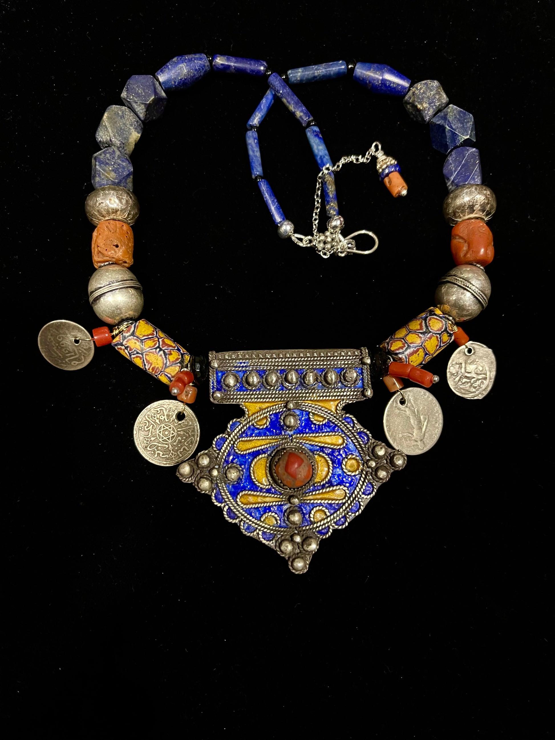 The central pendant is an enamelled Moroccan pendant from Tiznit ( newly made)