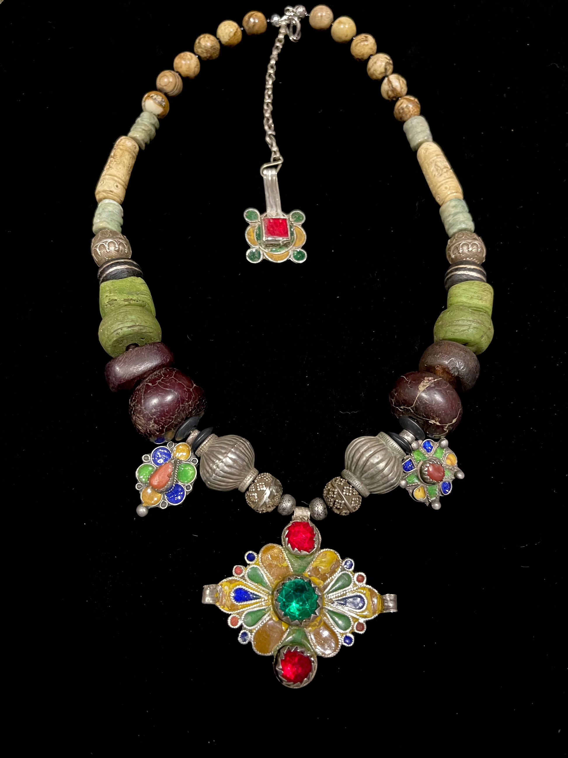 Morocco, with Phenolic resin beads, antique Hebron beads old silver beads and jasper