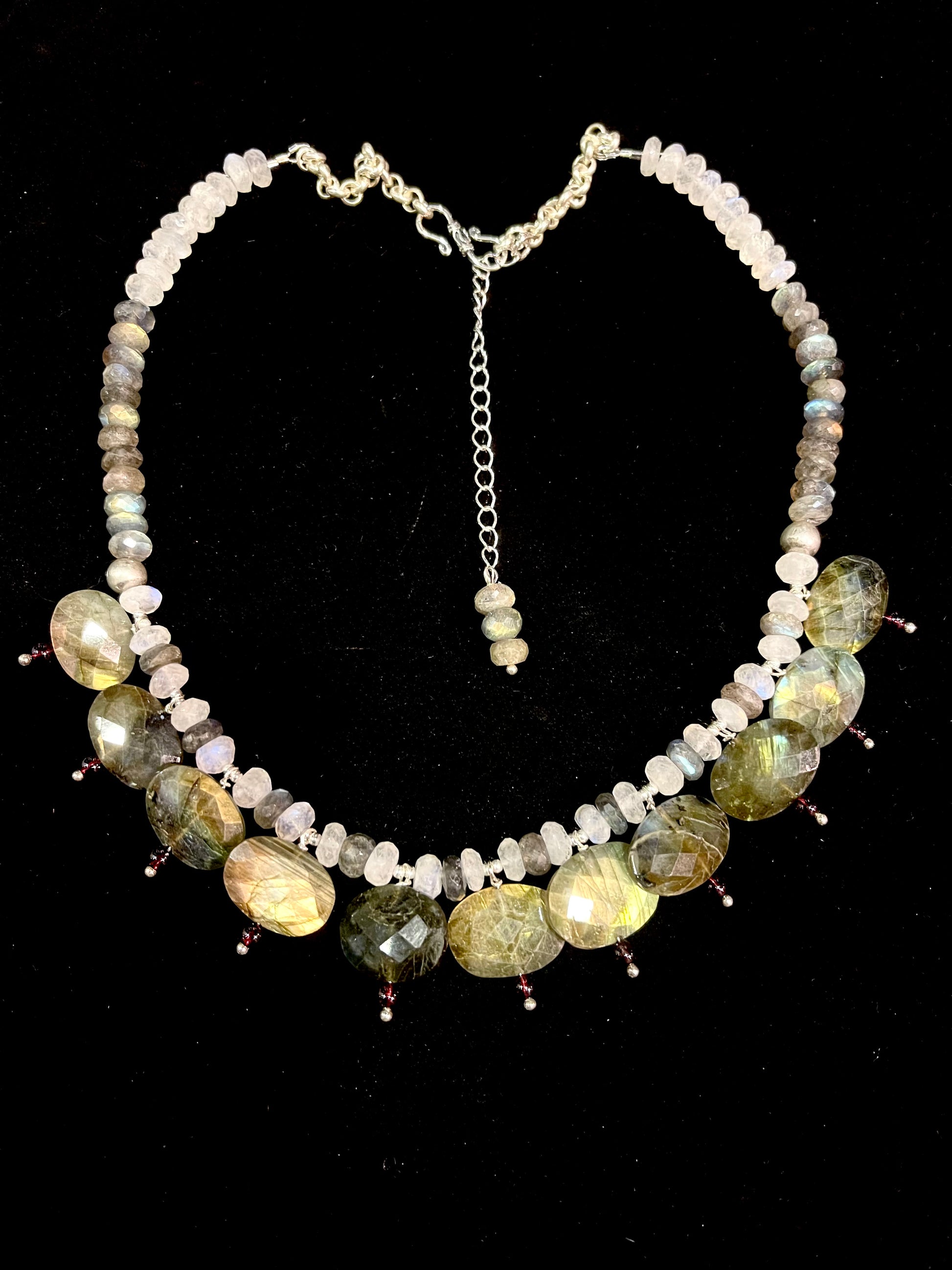 Faceted Labradorite Necklace with Garnets and Moonstones