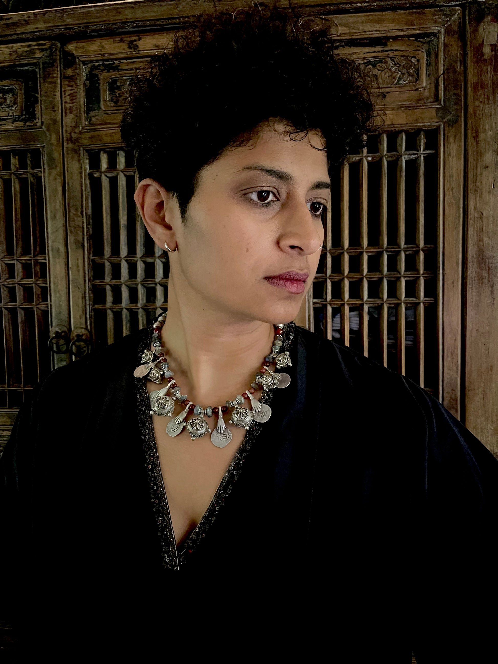 Vintage silver Moroccan pendants and coins - strung with Labradorite and carnelian