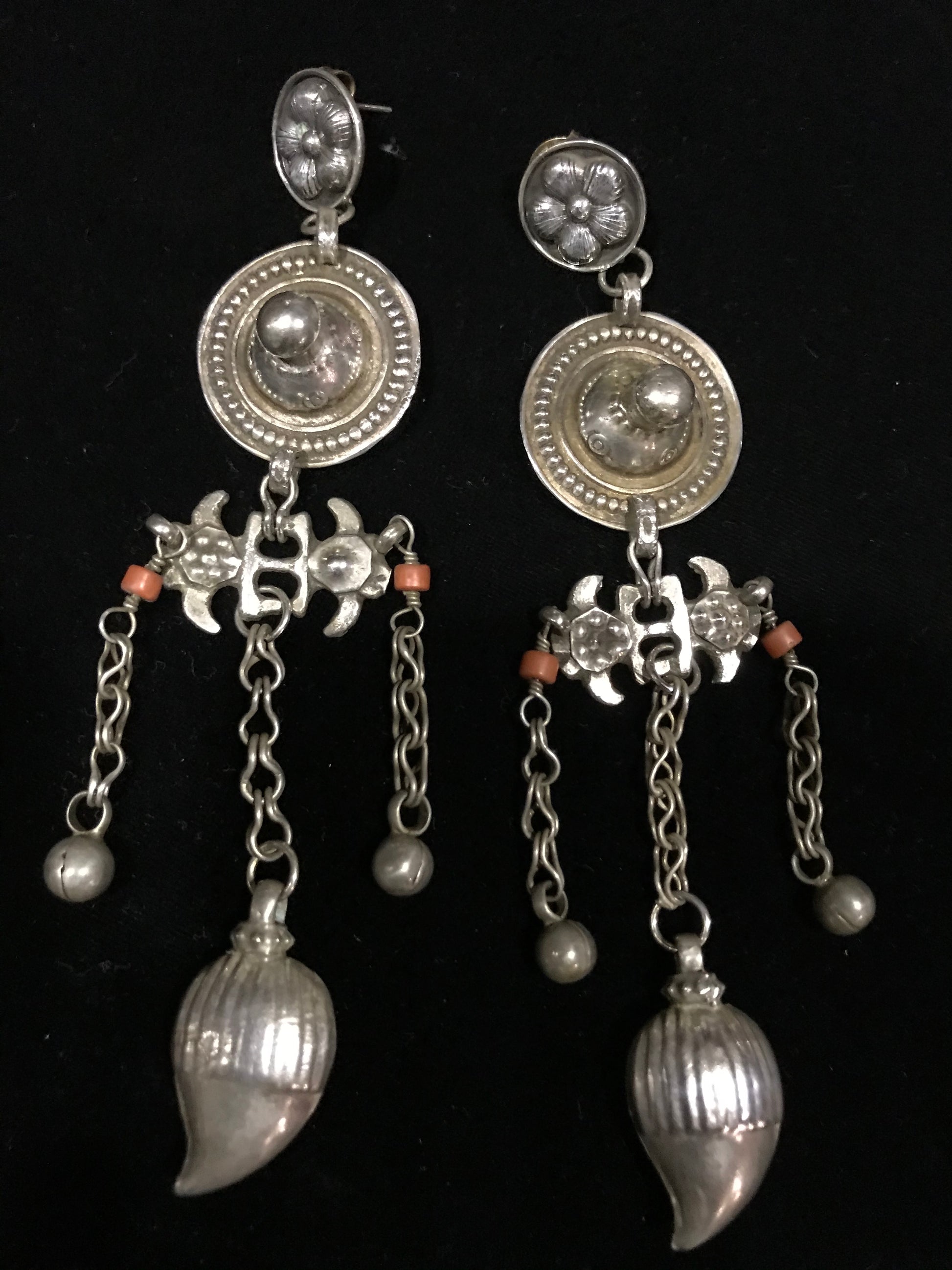 Afghan silver long “shoulder dusters” - sterling silver studs and Afghan silver elements.