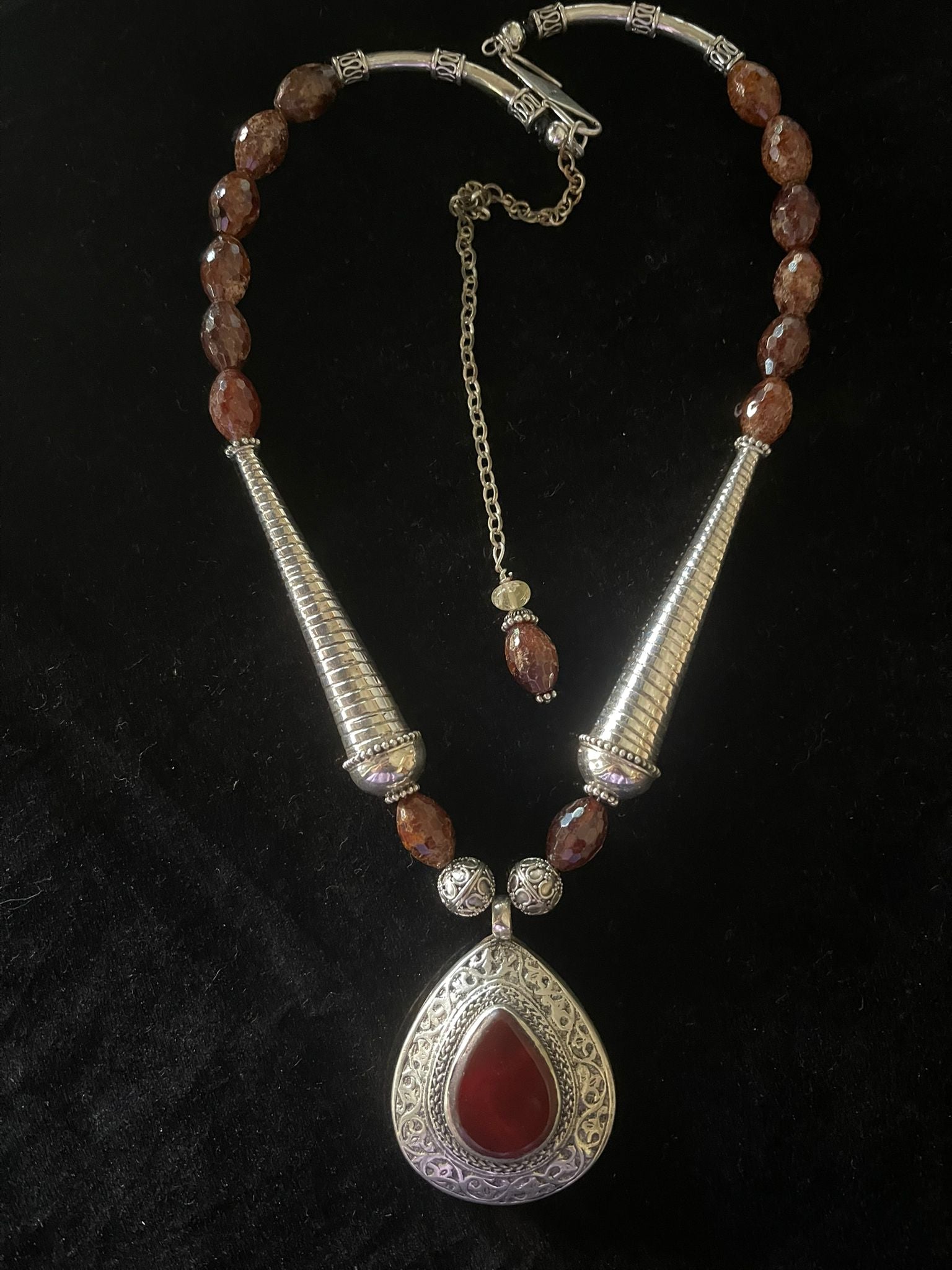 Silver and agate pendant from India- with sterling silver tubes, faceted sun stone and silver
