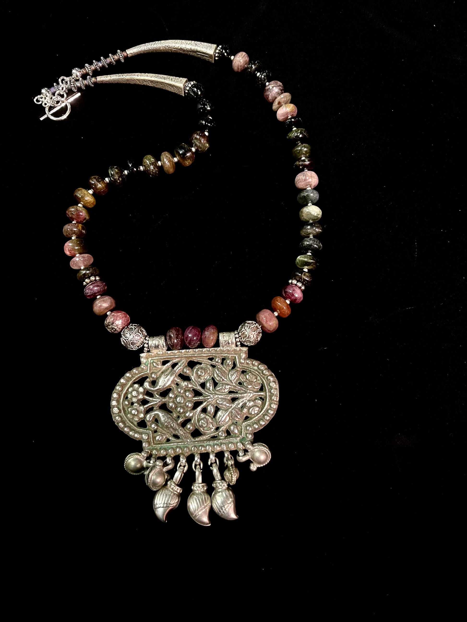 Strung with tourmaline beads and silver
